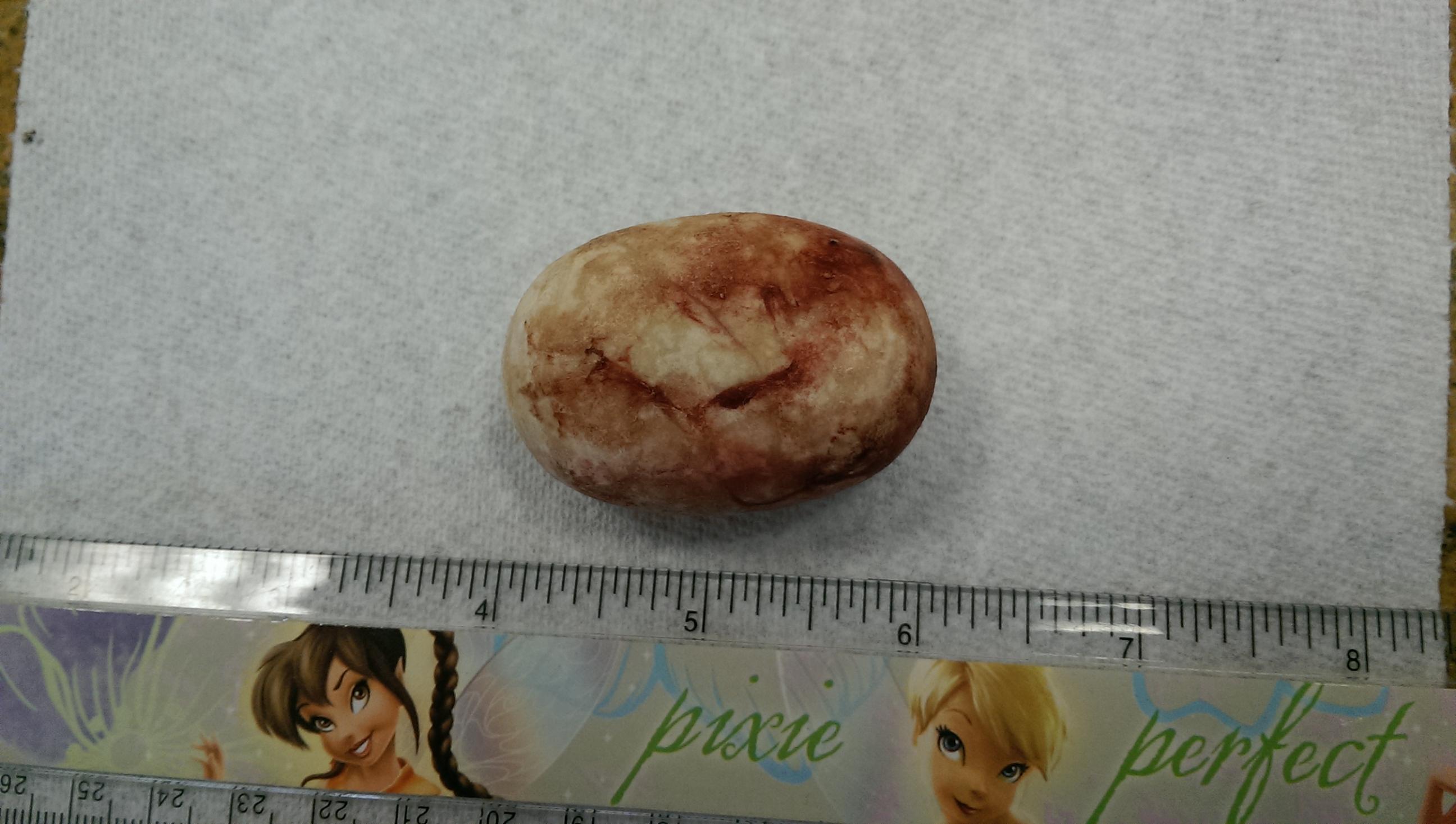 We have taken in many owner surrenders over the years but Kishi needs to be talked about this little girl was surrendered because they did not have time. She was urinating on the floor having accidents and we just thought she did not know how to use the doggie door ..Our foster took her to the vet and look what was found a 2 inch bladder stone that is 3/4 inch in height . I can only imagine the pain she was in till she was operated on…
